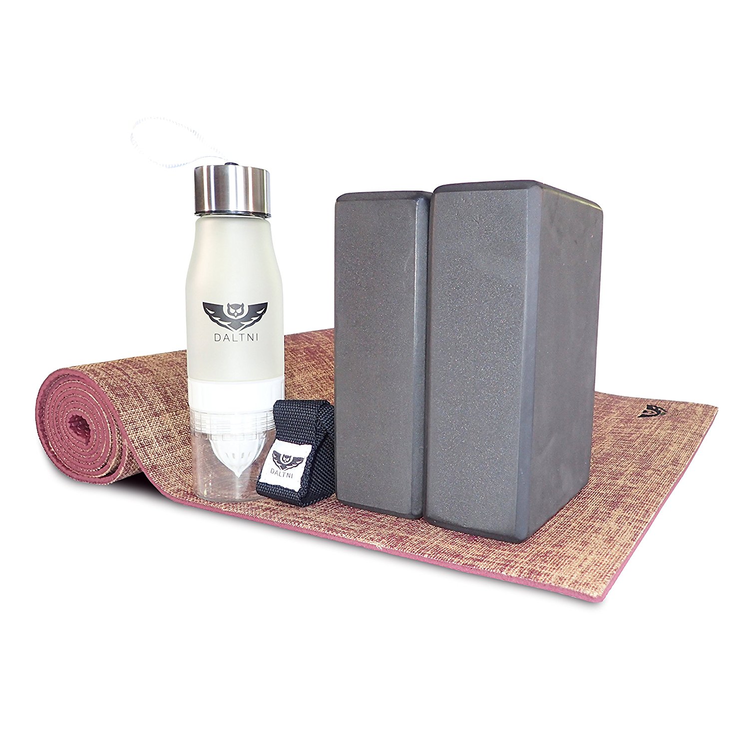 • EVERYTHING YOU NEED at a great price. Our yoga bundle includes versatile yoga accessories allowing it to adapt to your needs. You will get a YOGA MAT, 2 FOAM YOGA BRICKS, 1 YOGA MAT STRAP which can also be used as a yoga stretching sling and a INFUSER WATER BOTTLE.