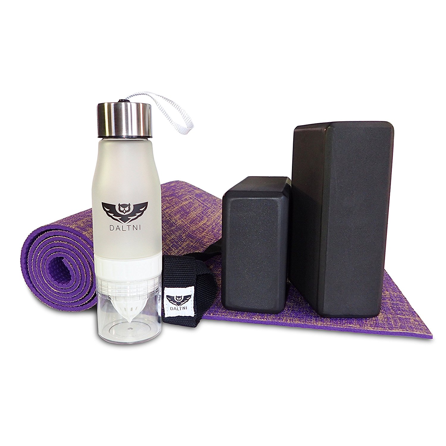 • EVERYTHING YOU NEED at a great price. Our yoga bundle includes versatile yoga accessories allowing it to adapt to your needs. You will get a YOGA MAT, 2 FOAM YOGA BRICKS, 1 YOGA MAT STRAP which can also be used as a yoga stretching sling and a INFUSER WATER BOTTLE.